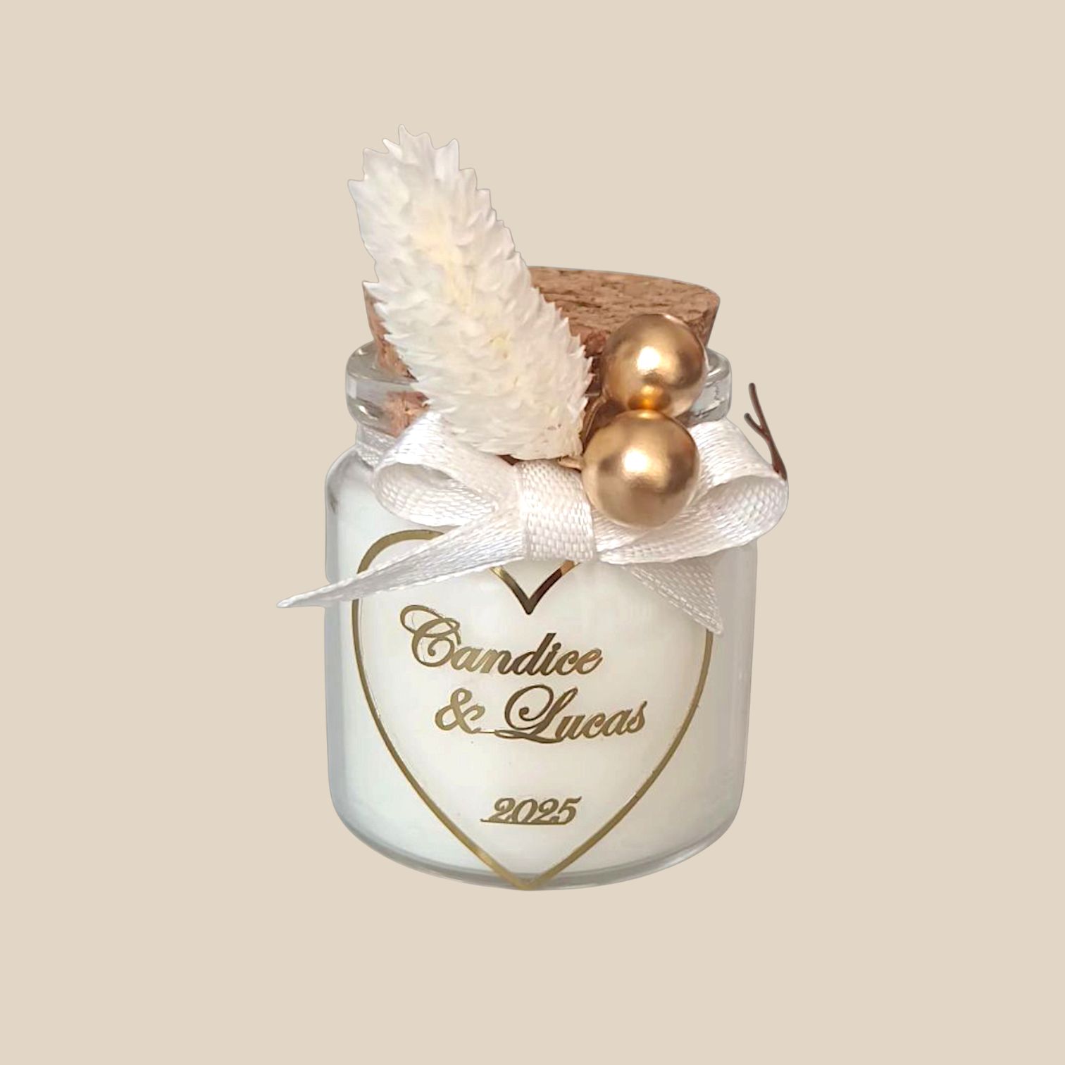 Offrez une touche de douceur et d’élégance à vos invités avec cette charmante bougie artisanale, parfaite pour sublimer vos événements : mariage, baptême, baby shower ou anniversaire.