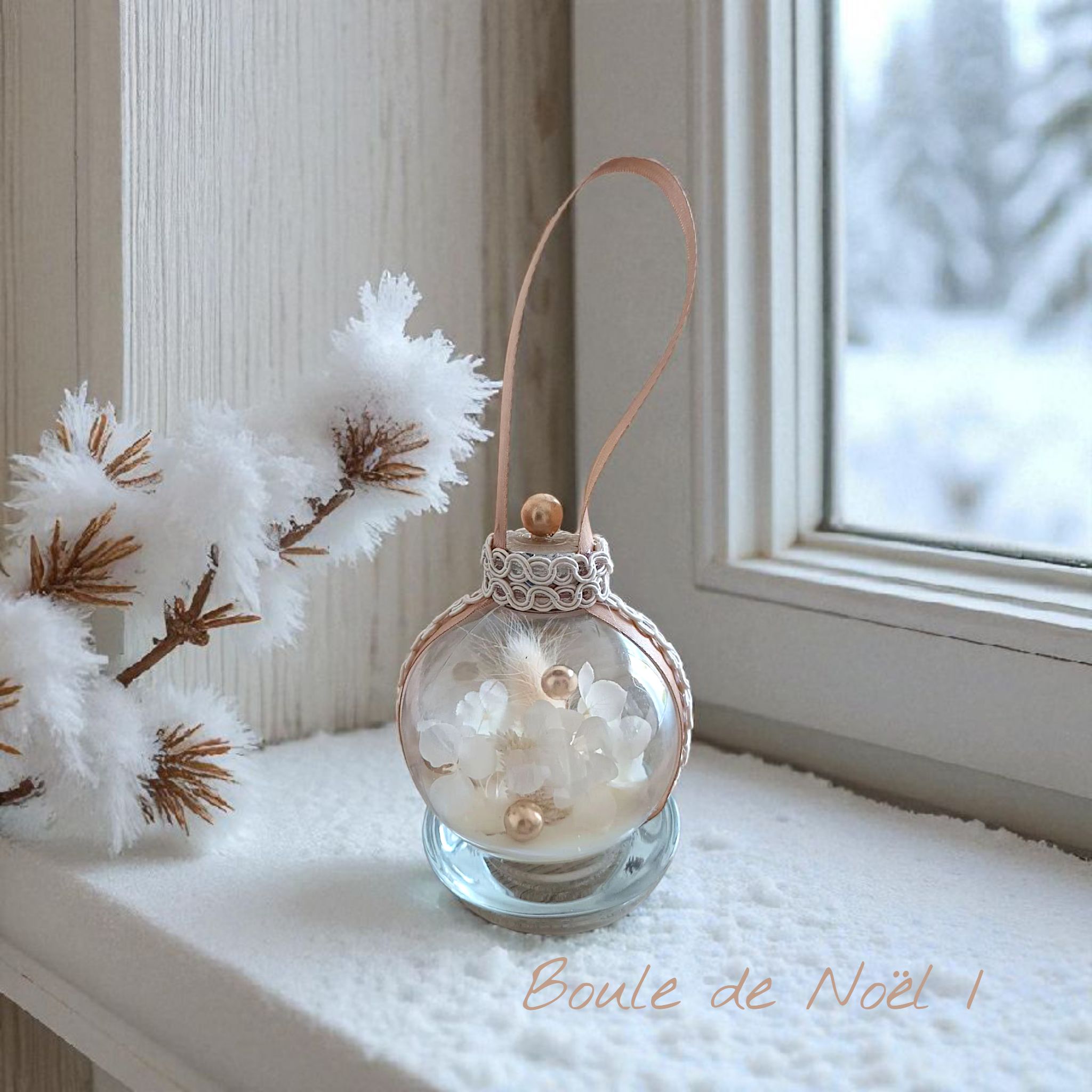 Offrez (ou offrez-vous) une boule de Noël poétique et élégante, symbole de douceur et de lumière, parfaite pour les fêtes ou pour sublimer votre intérieur tout l’hiver.